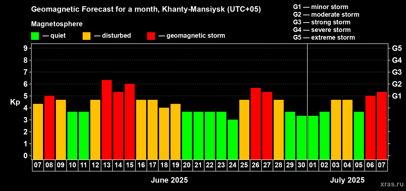 Geomagnetic activity forecast in Khanty-Mansiysk — Jun 07, 2025