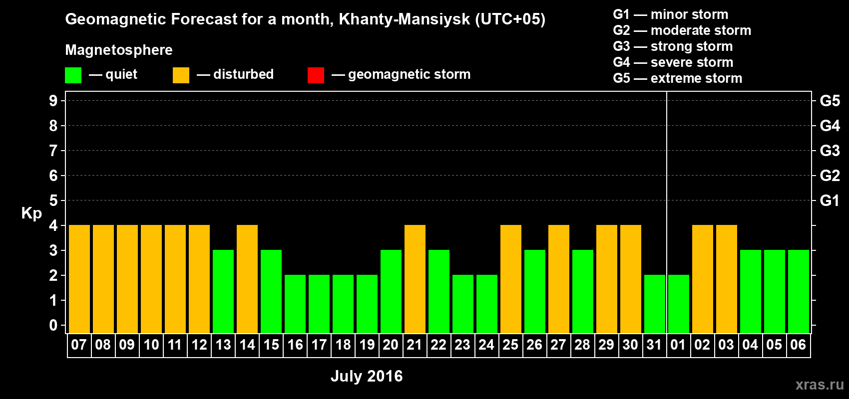 Geomagnetic activity forecast in Khanty-Mansiysk — Jul 07, 2016