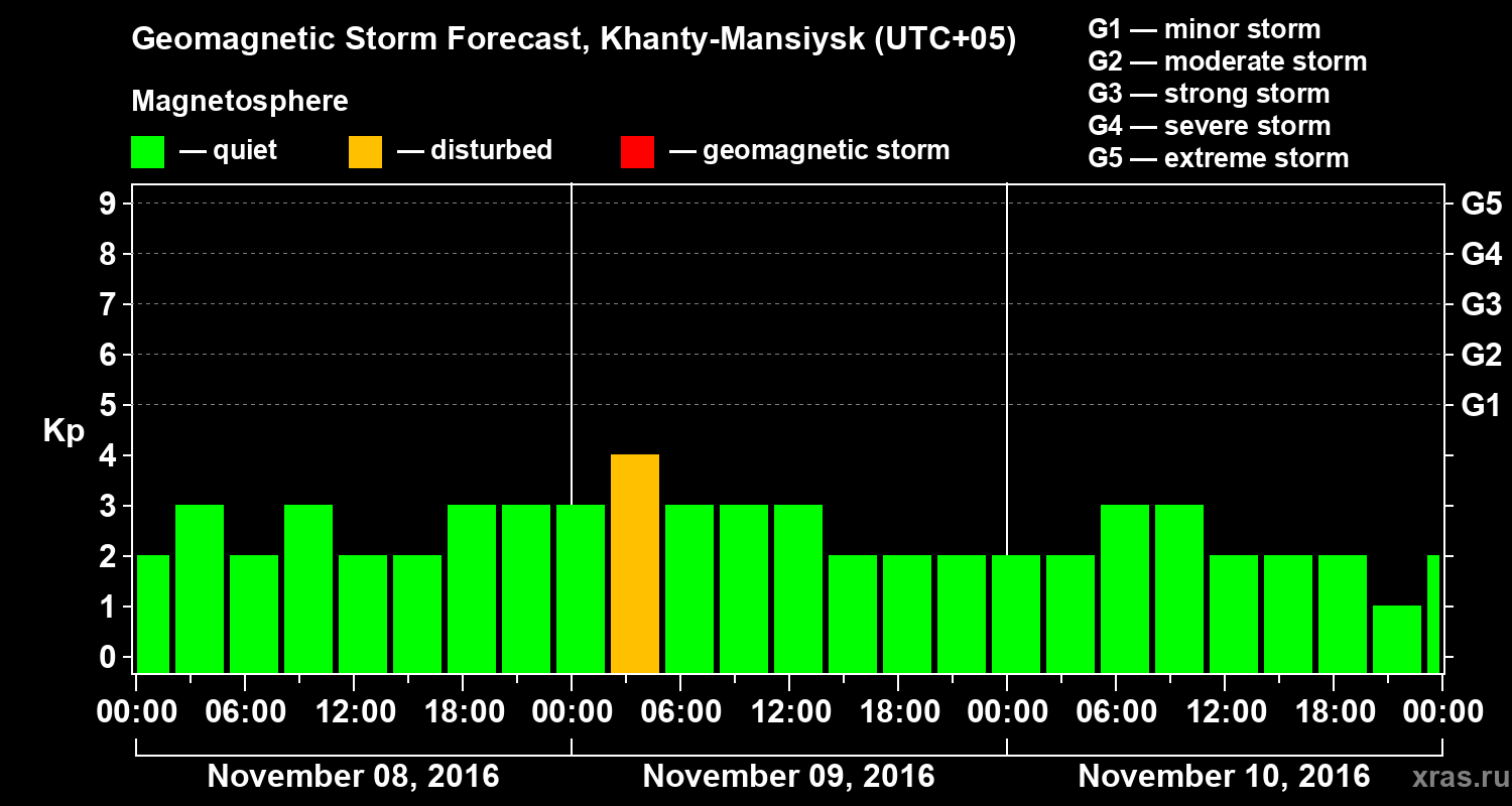 Geomagnetic activity forecast in Khanty-Mansiysk — Nov 08, 2016