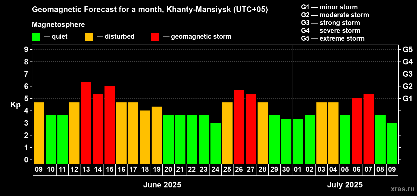 Geomagnetic storm forecast in Khanty-Mansiysk for Jun 09, 2025