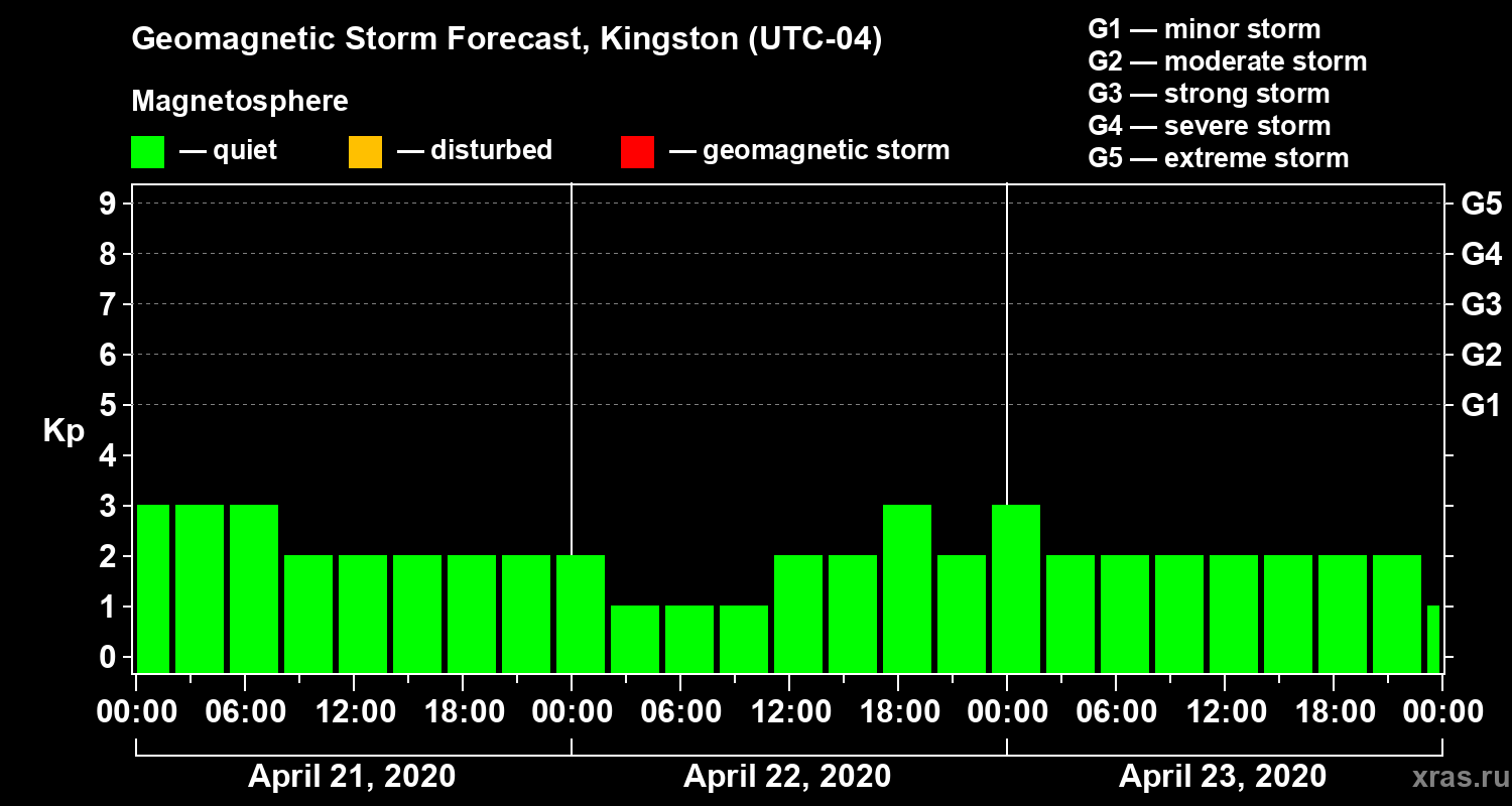 Geomagnetic storm forecast in Kingston for Apr 21, 2020