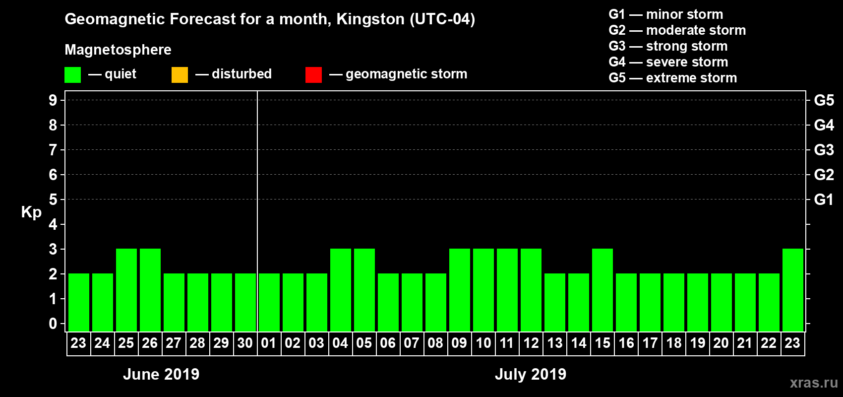 Geomagnetic storm forecast in Kingston for Jun 23, 2019