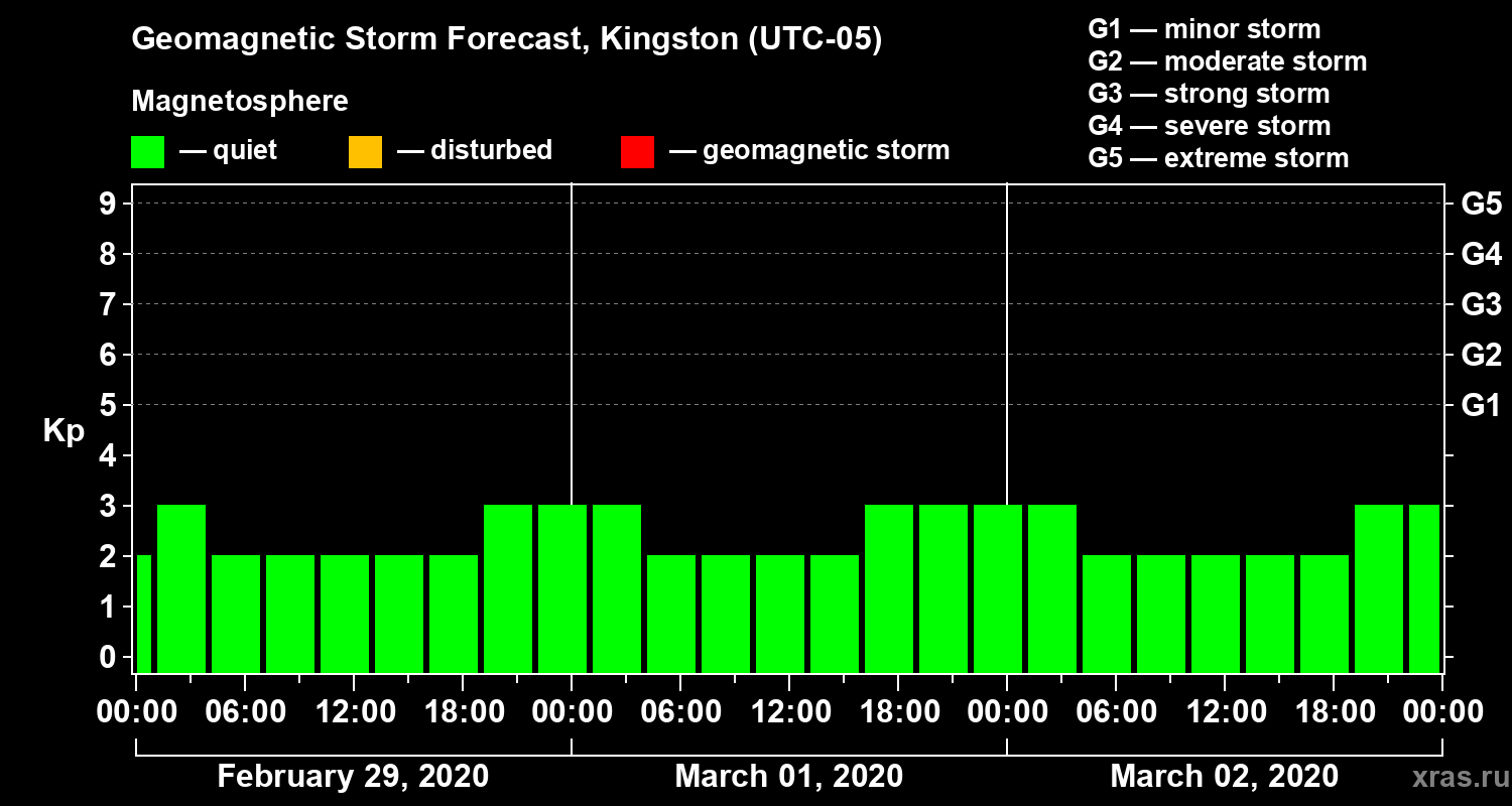 Geomagnetic storm forecast in Kingston for Feb 29, 2020