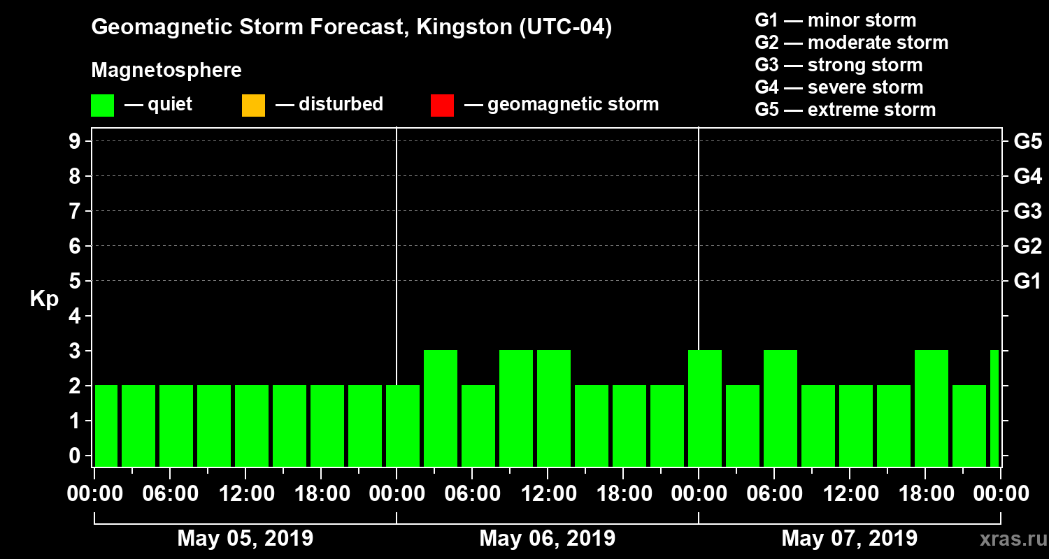 Geomagnetic storm forecast in Kingston for May 05, 2019