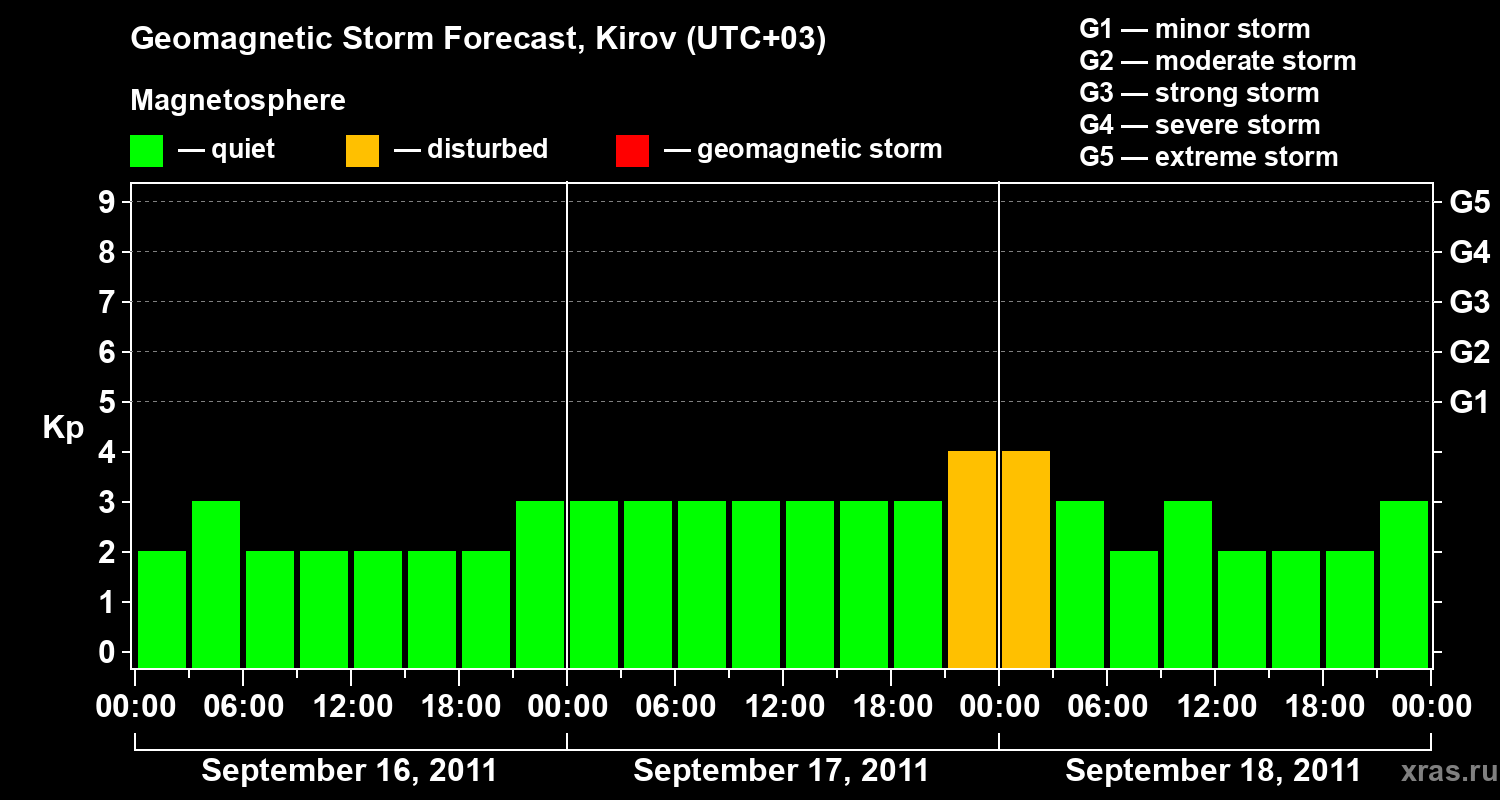 Geomagnetic storm forecast in Kirov for Sep 16, 2011