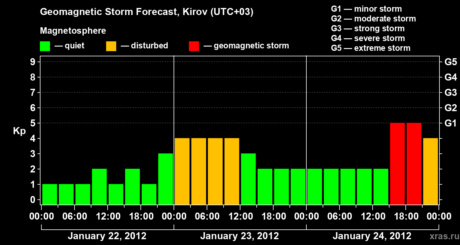 Geomagnetic storm forecast in Kirov for Jan 22, 2012