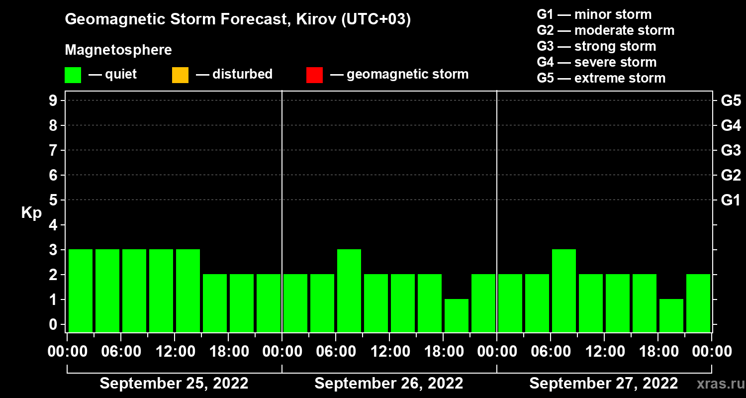 Geomagnetic storm forecast in Kirov for Sep 25, 2022