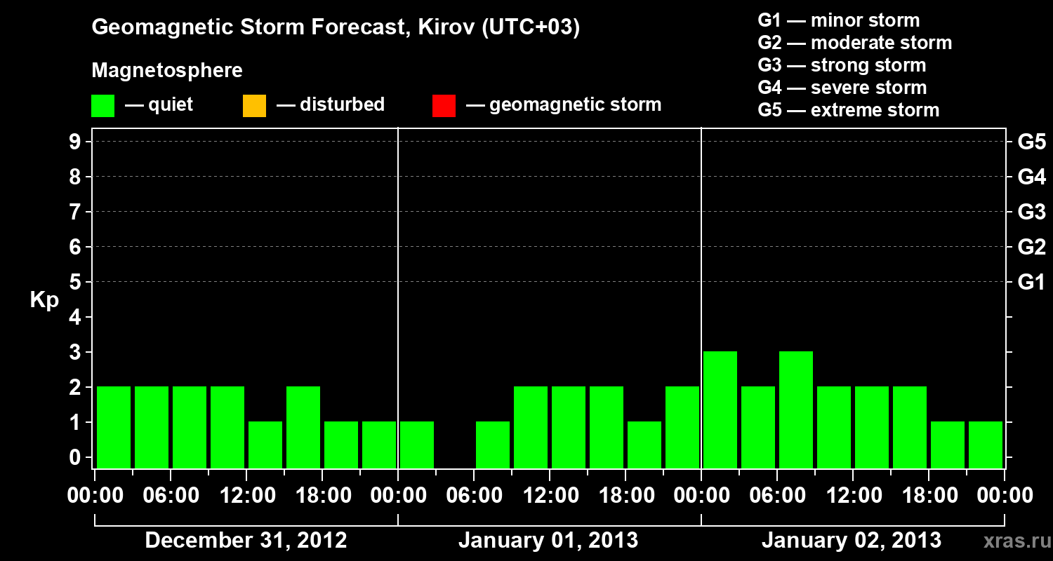 Geomagnetic storm forecast in Kirov for Dec 31, 2012