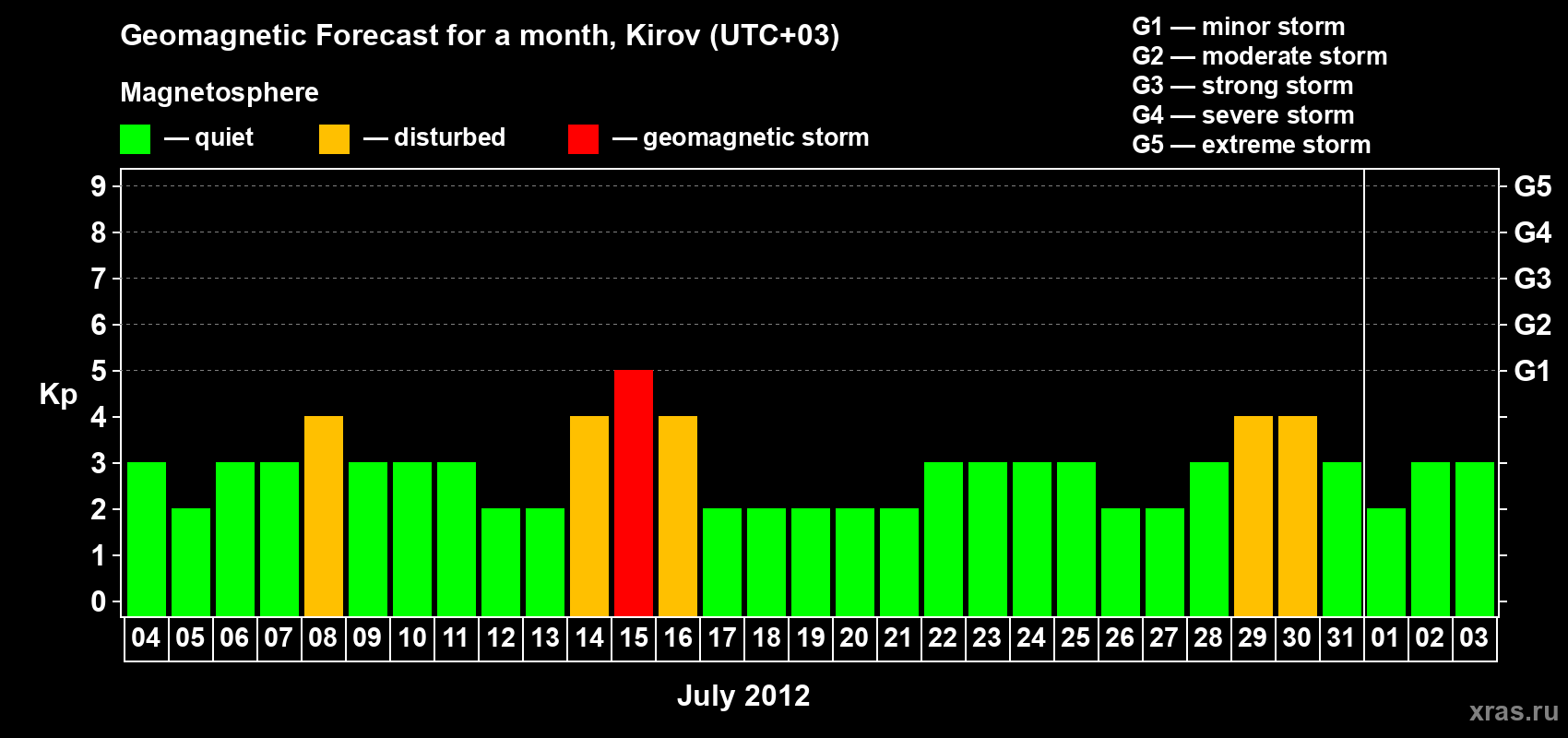 Geomagnetic storm forecast in Kirov for Jul 04, 2012
