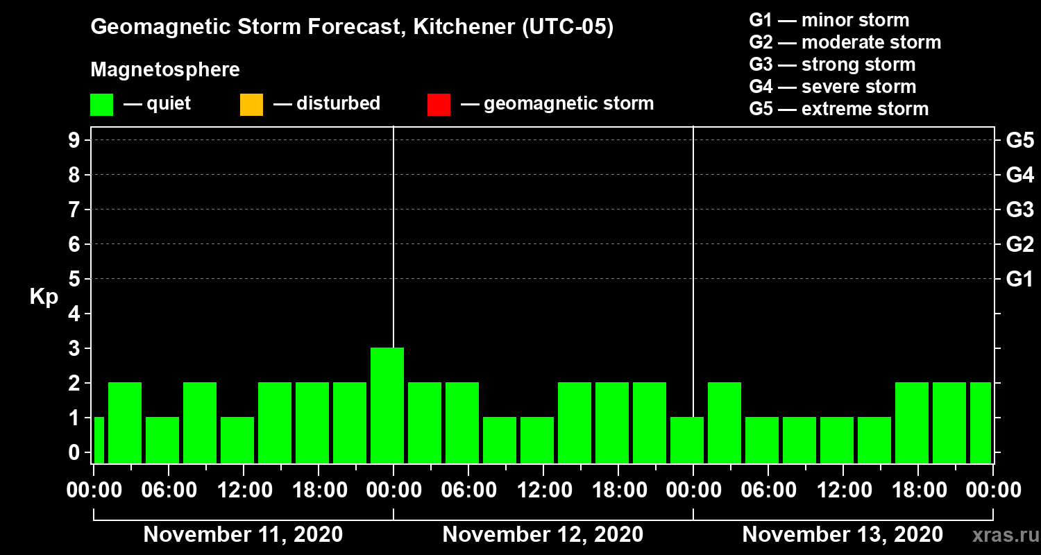 Geomagnetic activity forecast in Kitchener — Nov 11, 2020