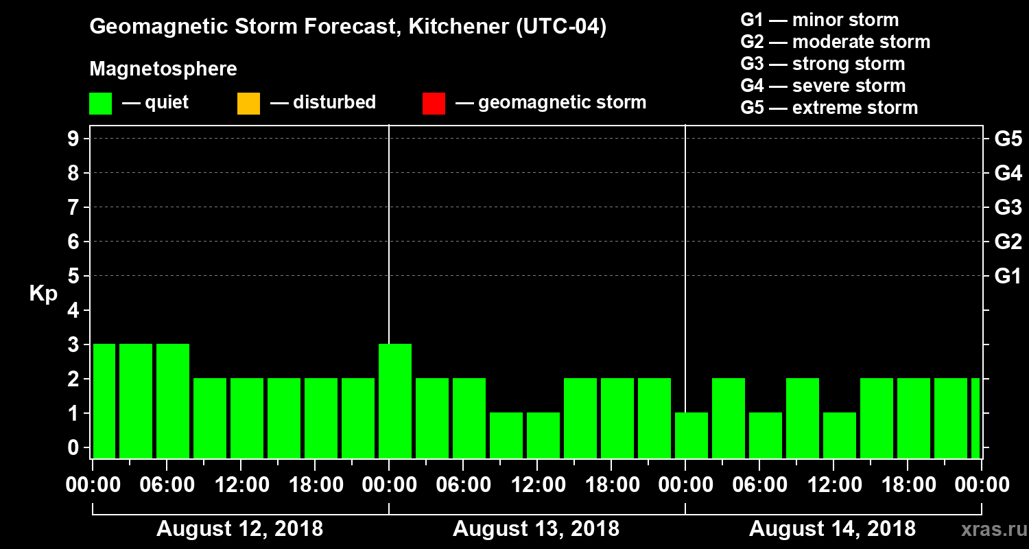 Geomagnetic activity forecast in Kitchener — Aug 12, 2018