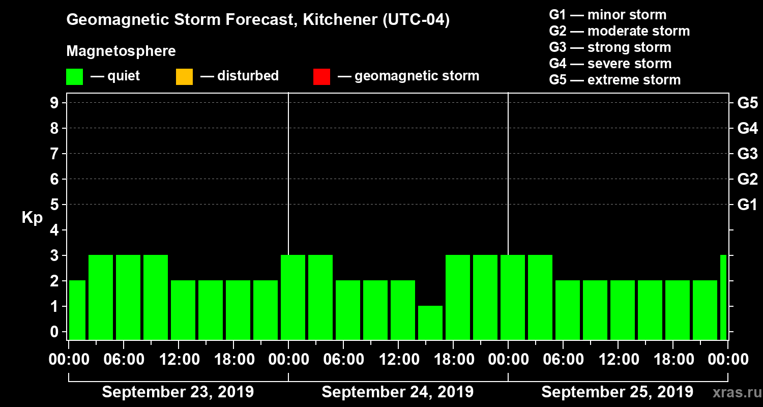 Geomagnetic activity forecast in Kitchener — Sep 23, 2019