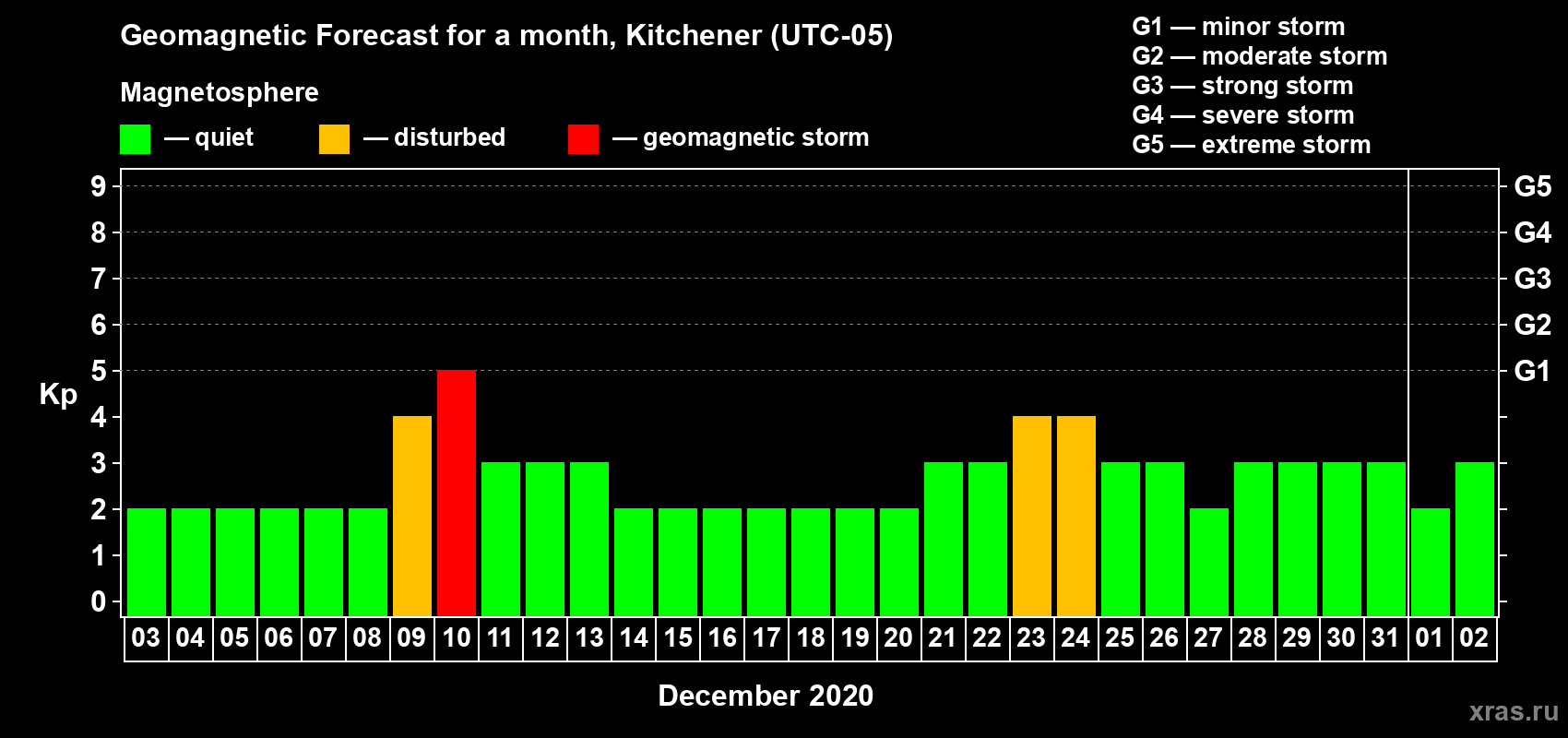 Geomagnetic activity forecast in Kitchener — Dec 03, 2020