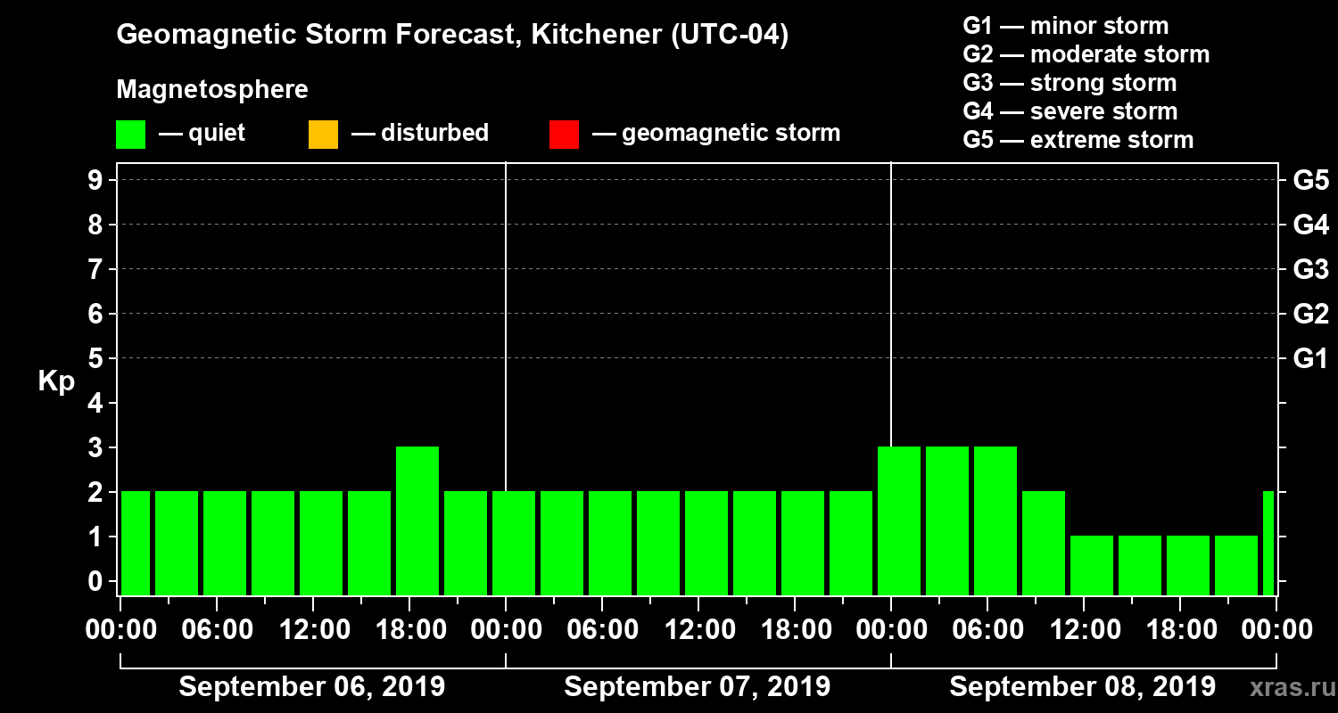 Geomagnetic storm forecast in Kitchener for Sep 06, 2019