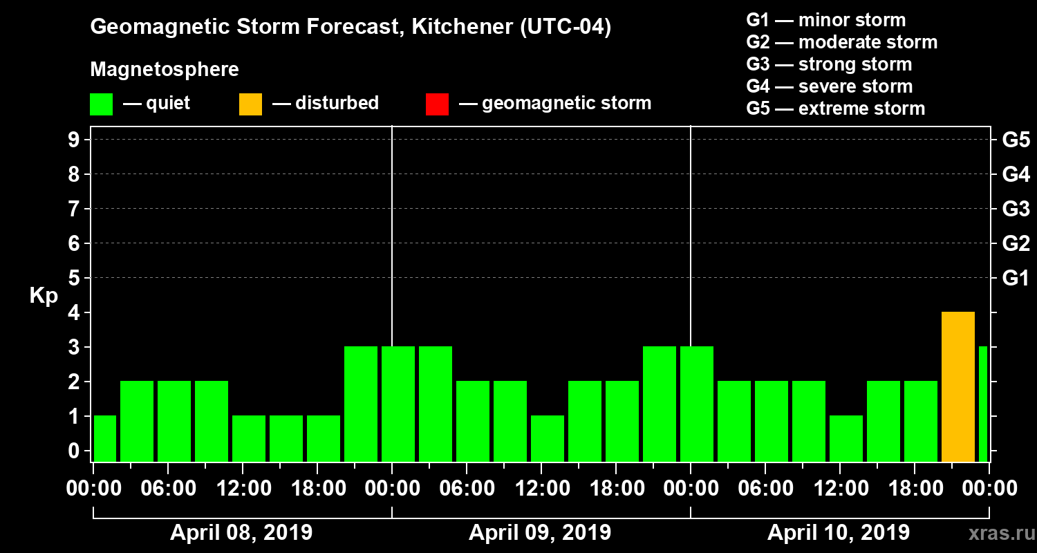 Geomagnetic storm forecast in Kitchener for Apr 08, 2019