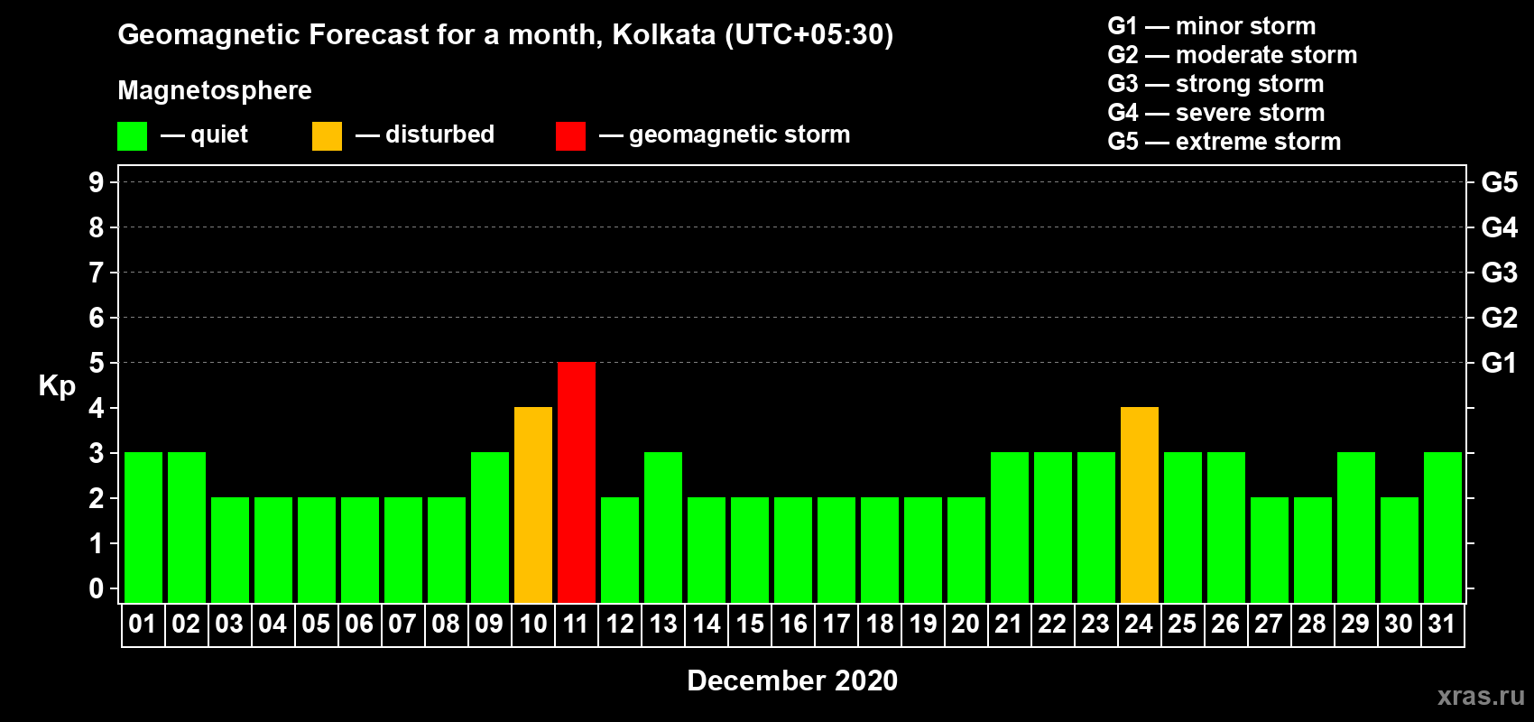 Geomagnetic activity forecast in Kolkata — Dec 01, 2020