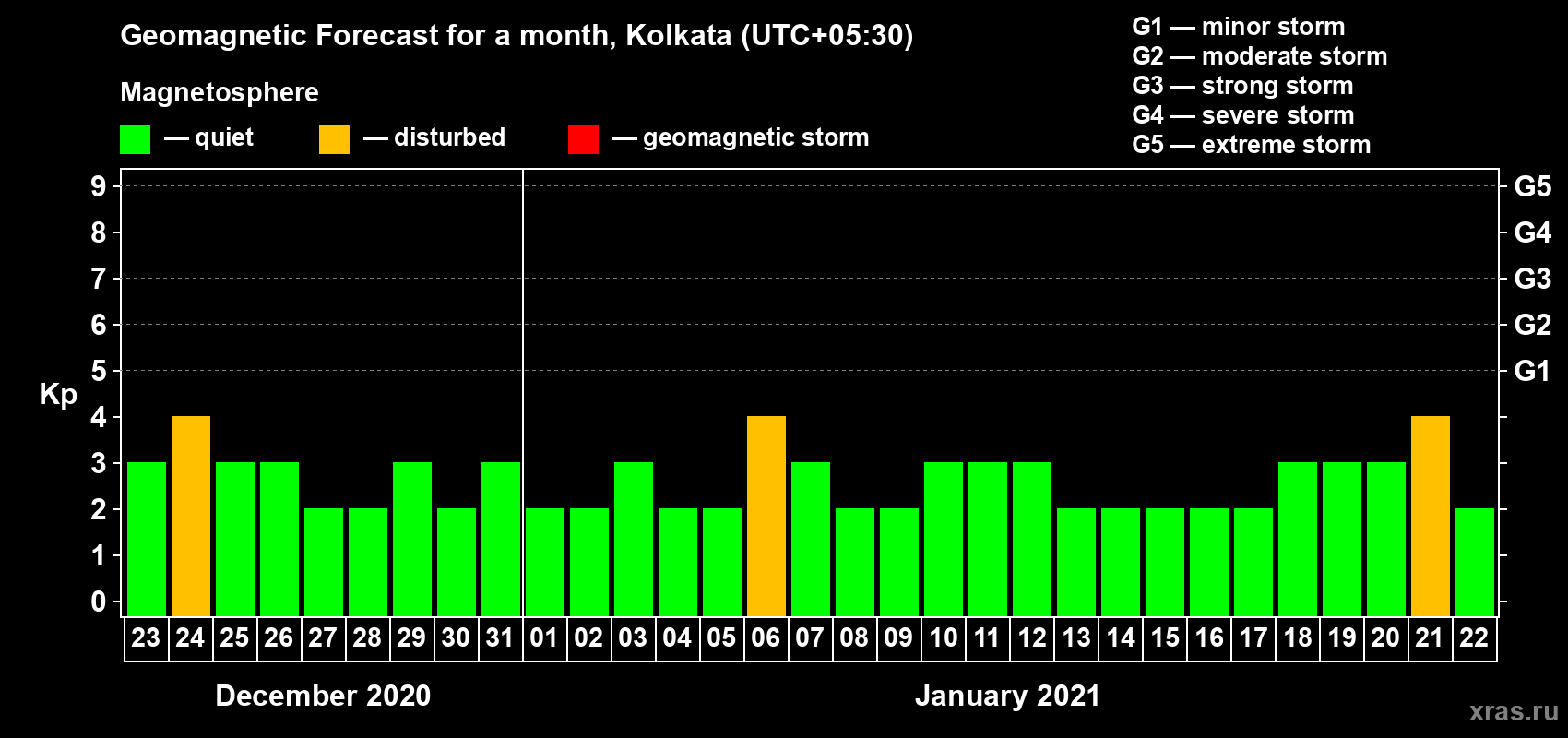 Geomagnetic activity forecast in Kolkata — Dec 23, 2020