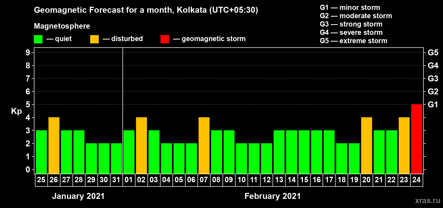 Geomagnetic activity forecast in Kolkata — Jan 25, 2021
