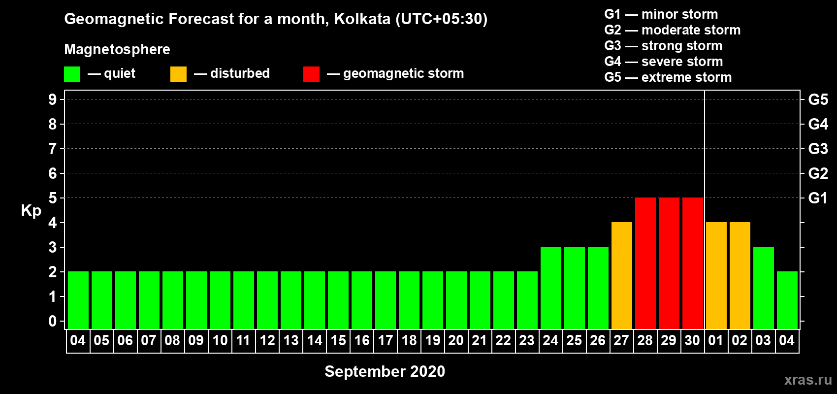 Geomagnetic activity forecast in Kolkata — Sep 04, 2020