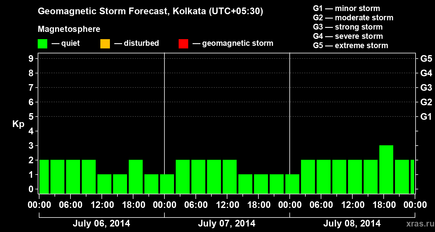 Geomagnetic storm forecast in Kolkata for Jul 06, 2014