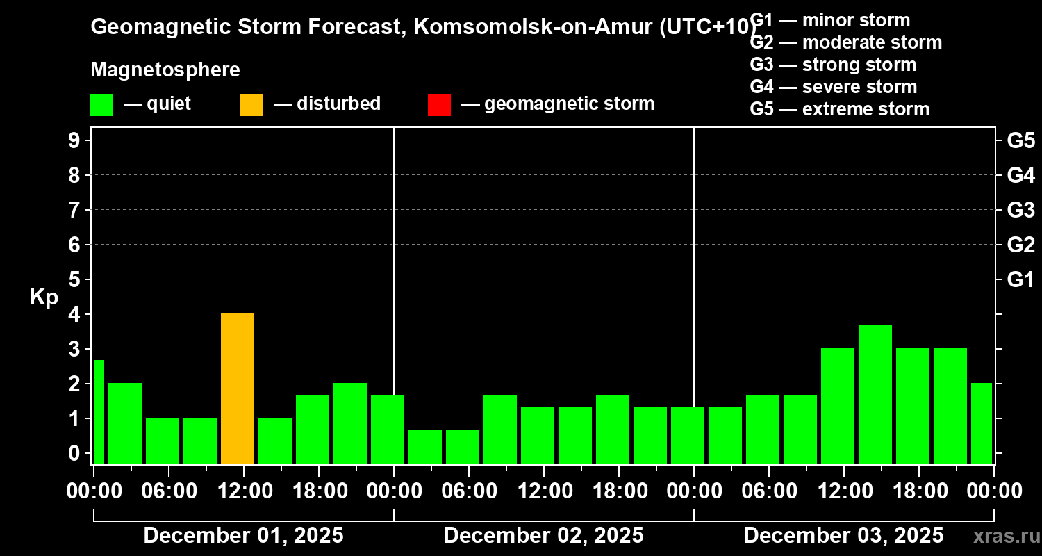 Geomagnetic activity forecast in Komsomolsk-on-Amur — Dec 01, 2025