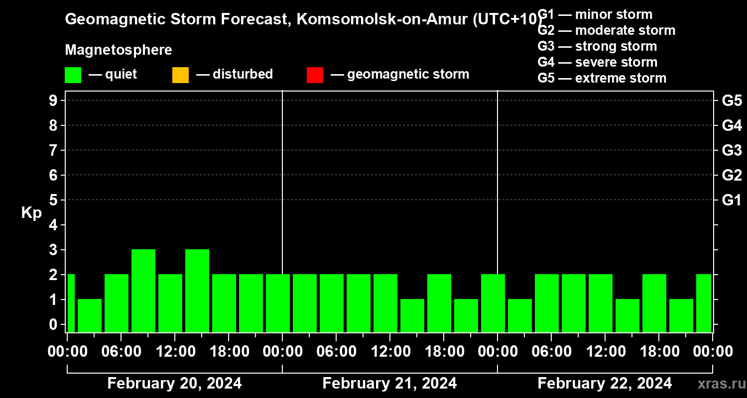 Geomagnetic storm forecast in Komsomolsk-on-Amur for Feb 20, 2024