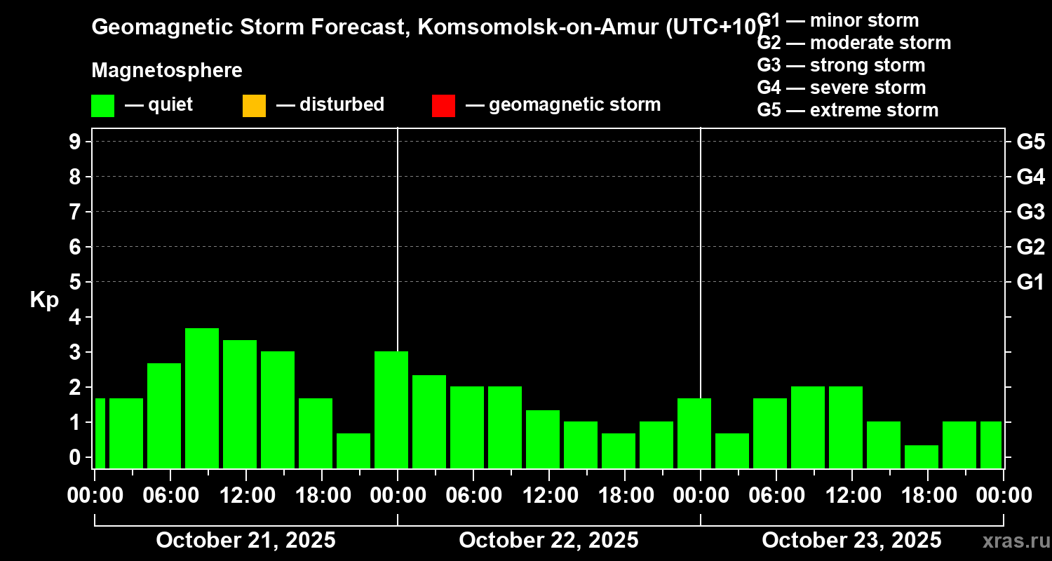 Geomagnetic storm forecast in Komsomolsk-on-Amur for Oct 21, 2025