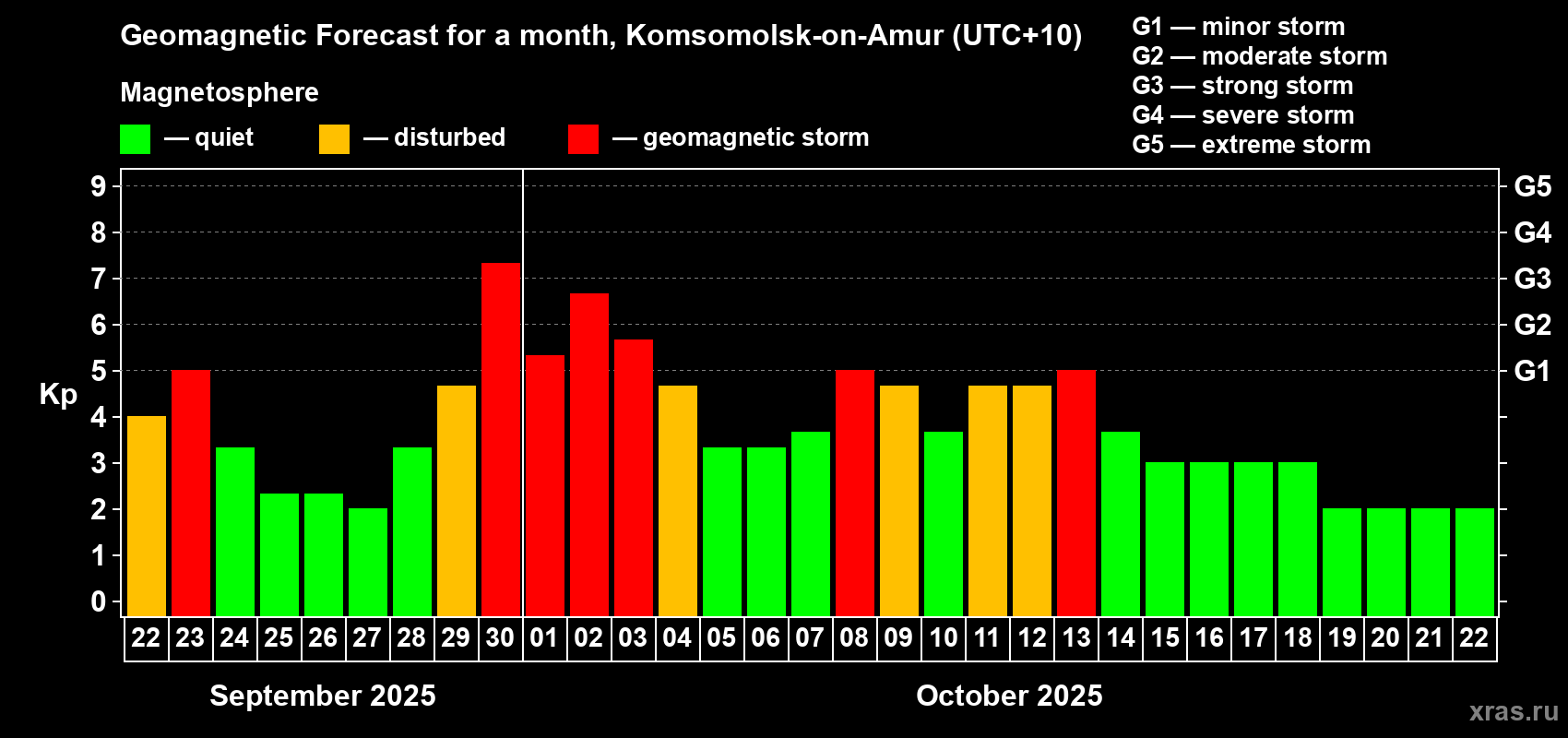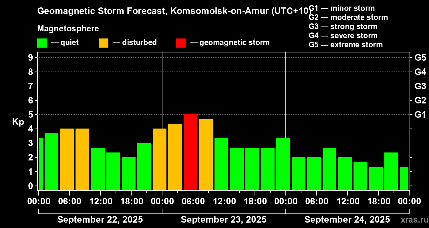 Geomagnetic storm forecast in Komsomolsk-on-Amur for Sep 22, 2025