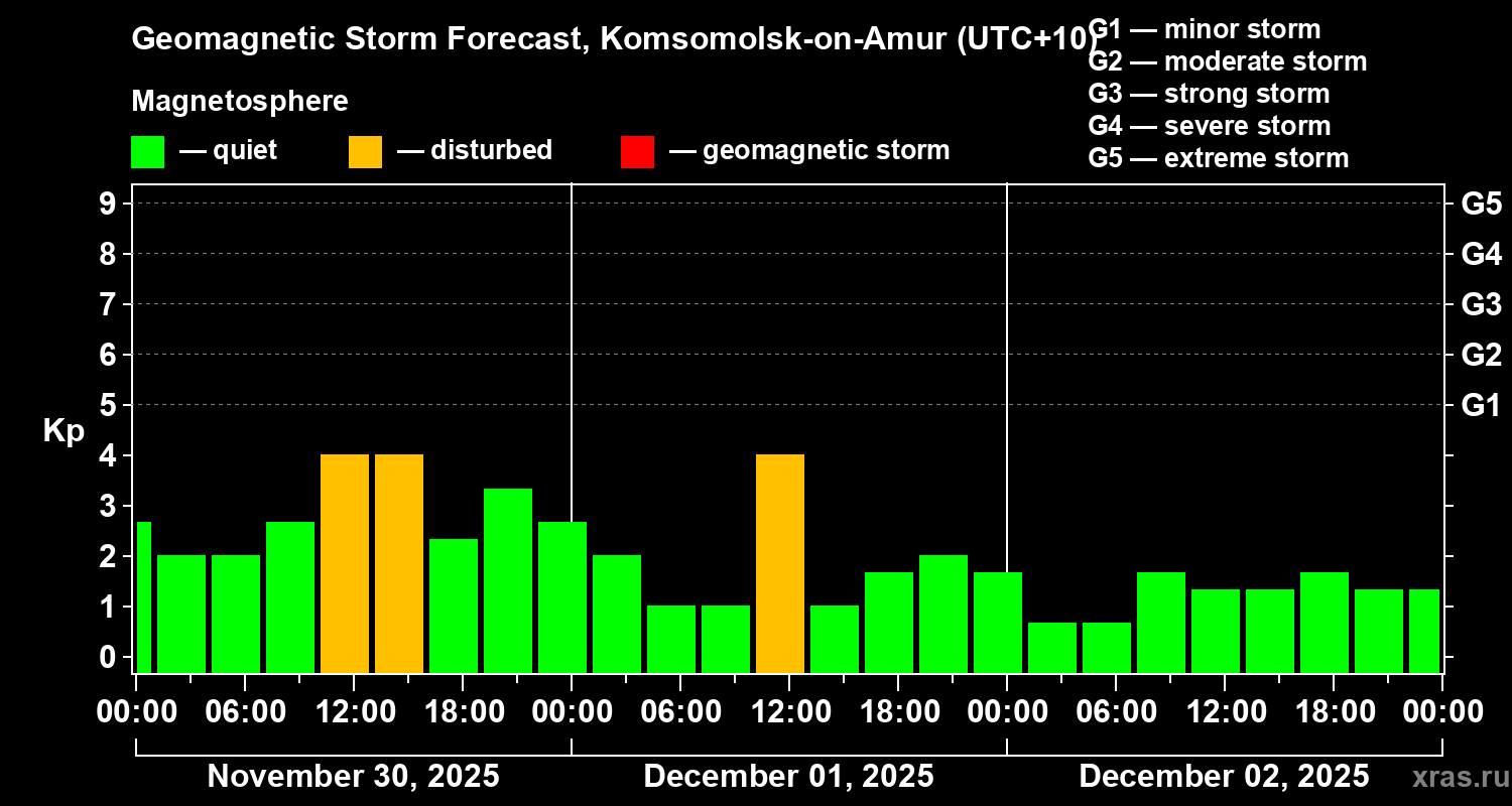 Geomagnetic activity forecast in Komsomolsk-on-Amur — Nov 30, 2025