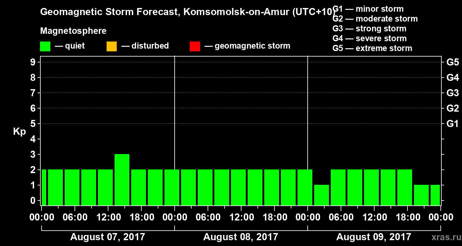 Geomagnetic storm forecast in Komsomolsk-on-Amur for Aug 07, 2017