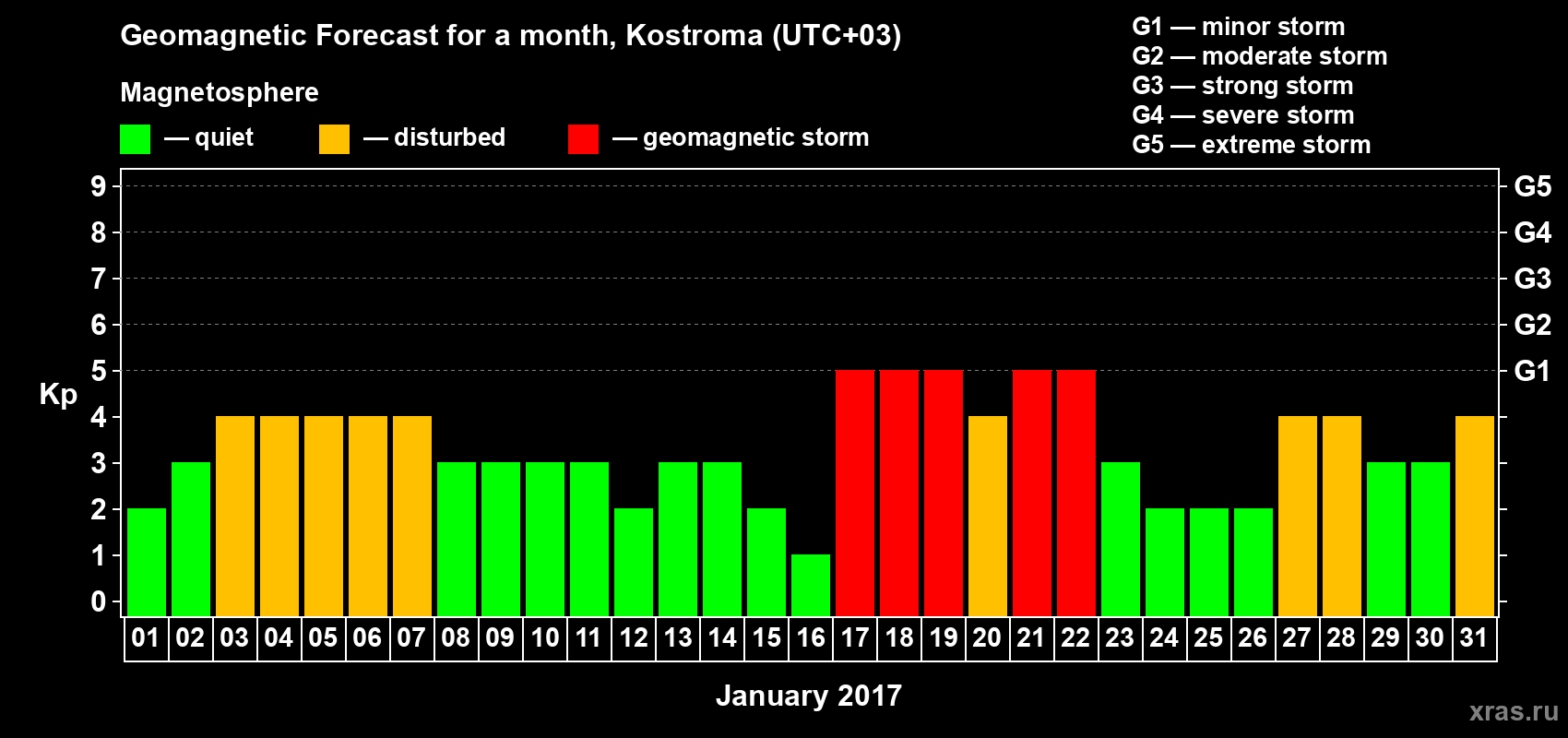Geomagnetic storm forecast in Kostroma for Jan 01, 2017