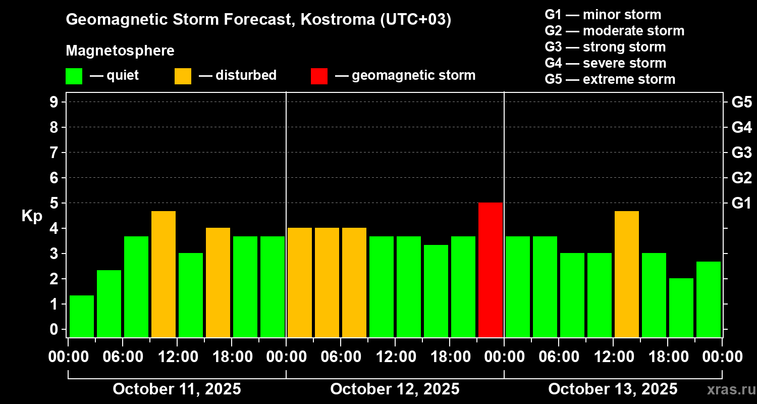 Geomagnetic storm forecast in Kostroma for Oct 11, 2025