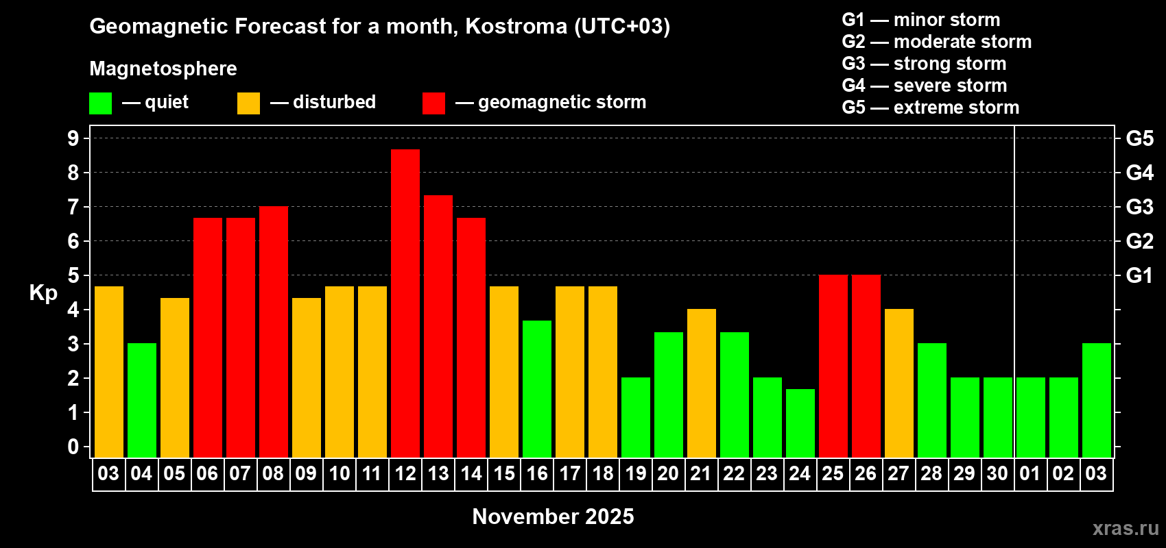 Geomagnetic storm forecast in Kostroma for Nov 03, 2025