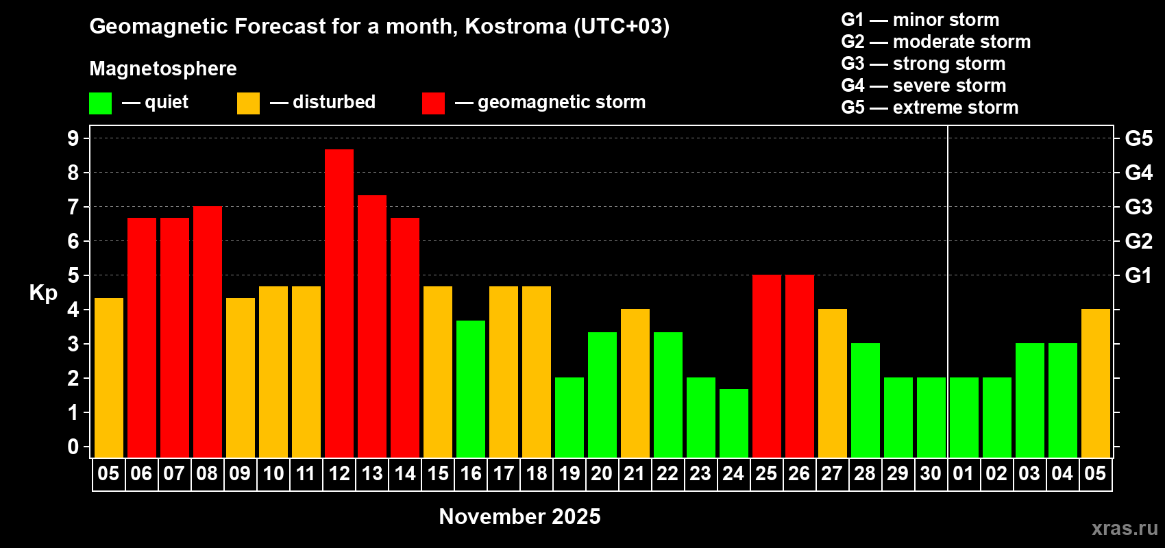 Geomagnetic storm forecast in Kostroma for Nov 05, 2025