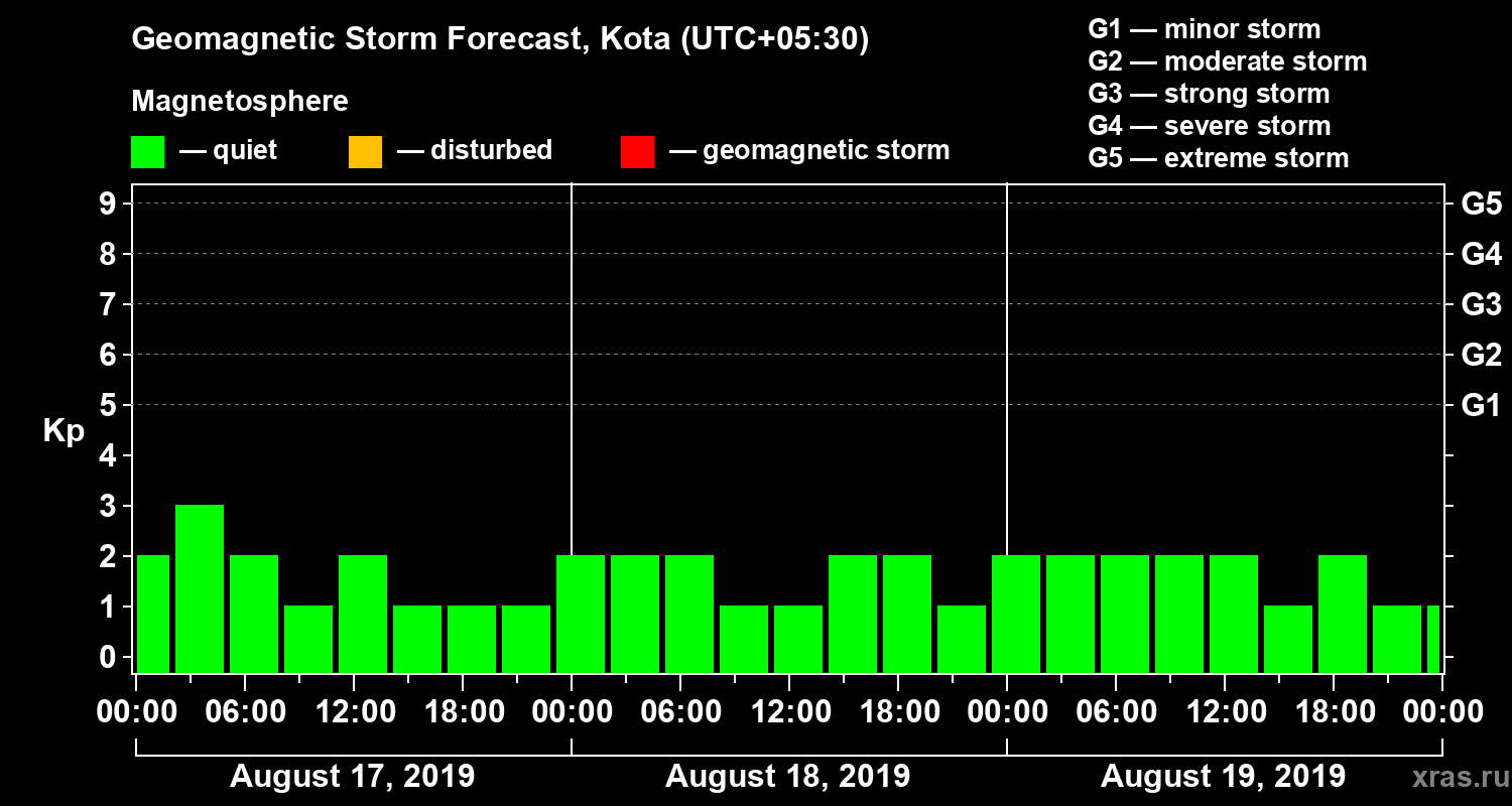 Geomagnetic storm forecast in Kota for Aug 17, 2019