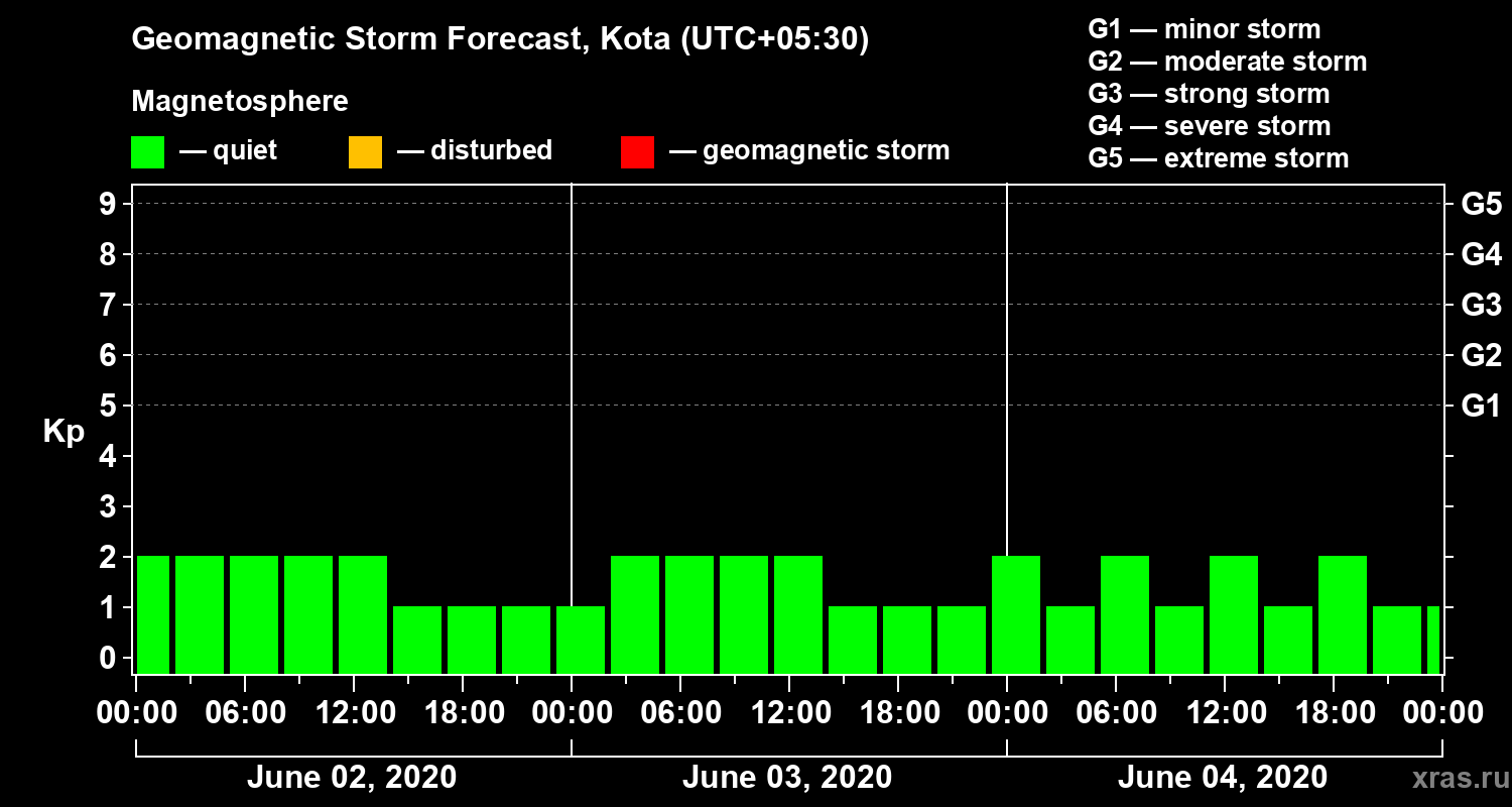 Geomagnetic storm forecast in Kota for Jun 02, 2020