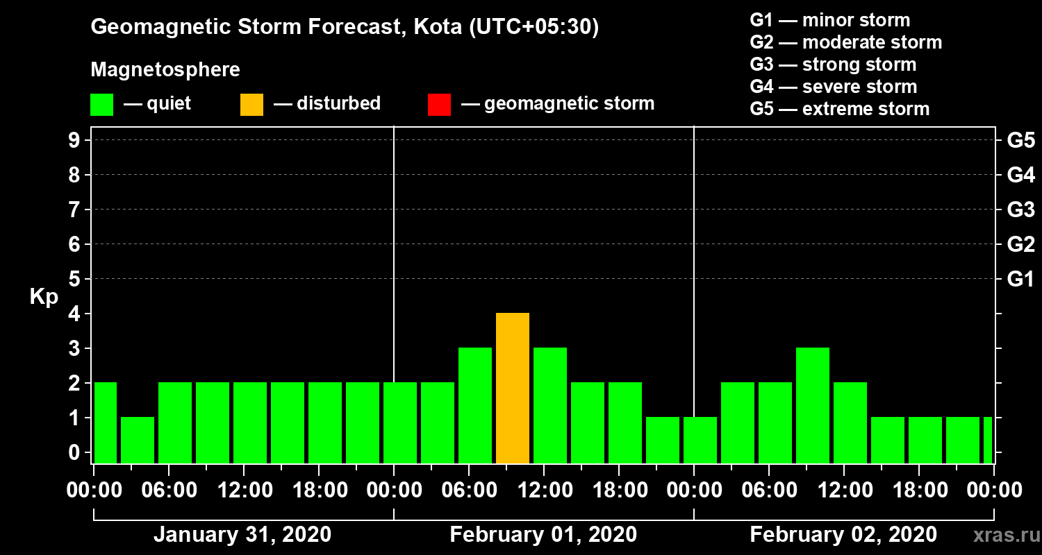 Geomagnetic storm forecast in Kota for Jan 31, 2020