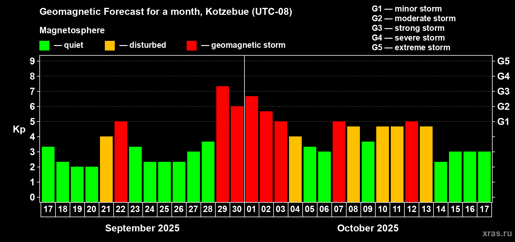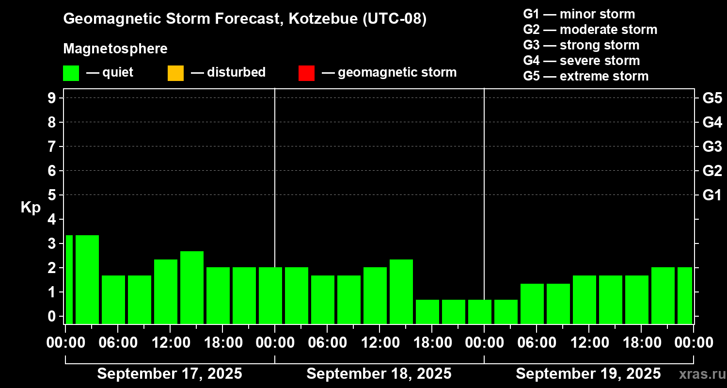 Geomagnetic storm forecast in Kotzebue for Sep 17, 2025