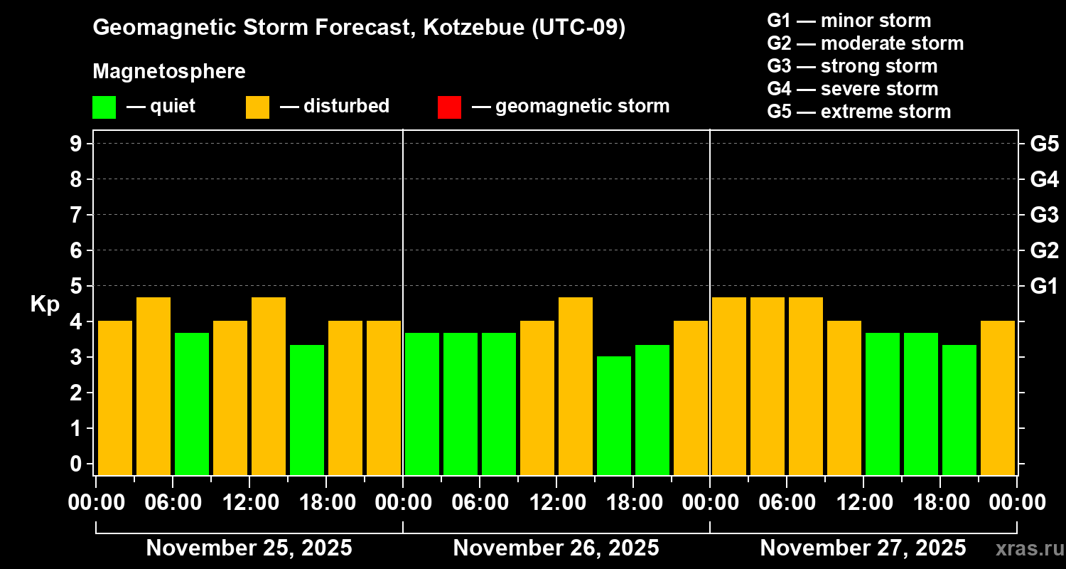 Geomagnetic storm forecast in Kotzebue for Nov 25, 2025
