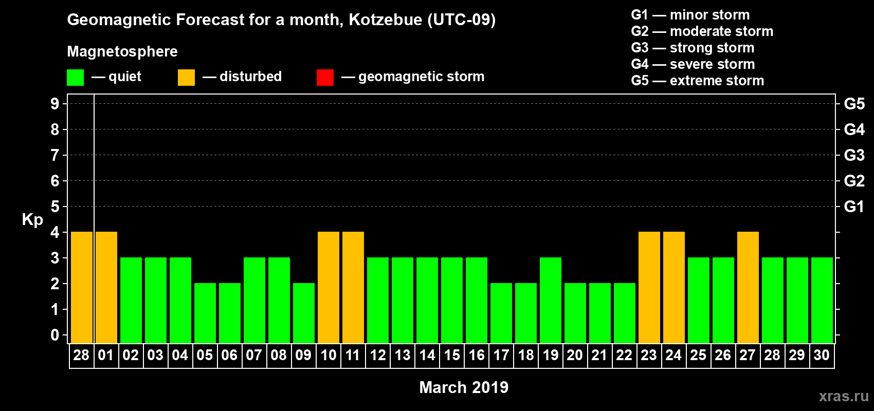Geomagnetic storm forecast in Kotzebue for Feb 28, 2019