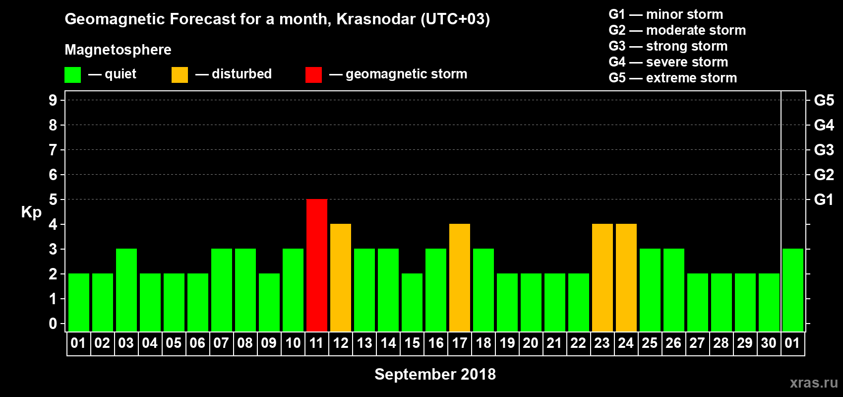 Geomagnetic storm forecast in Krasnodar for Sep 01, 2018