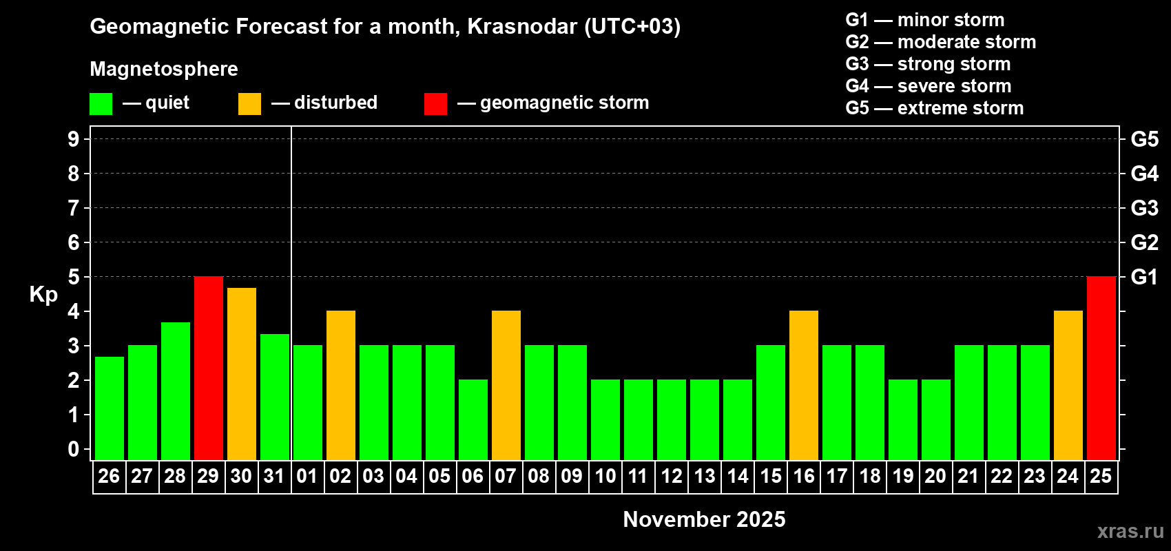 Geomagnetic storm forecast in Krasnodar for Oct 26, 2025
