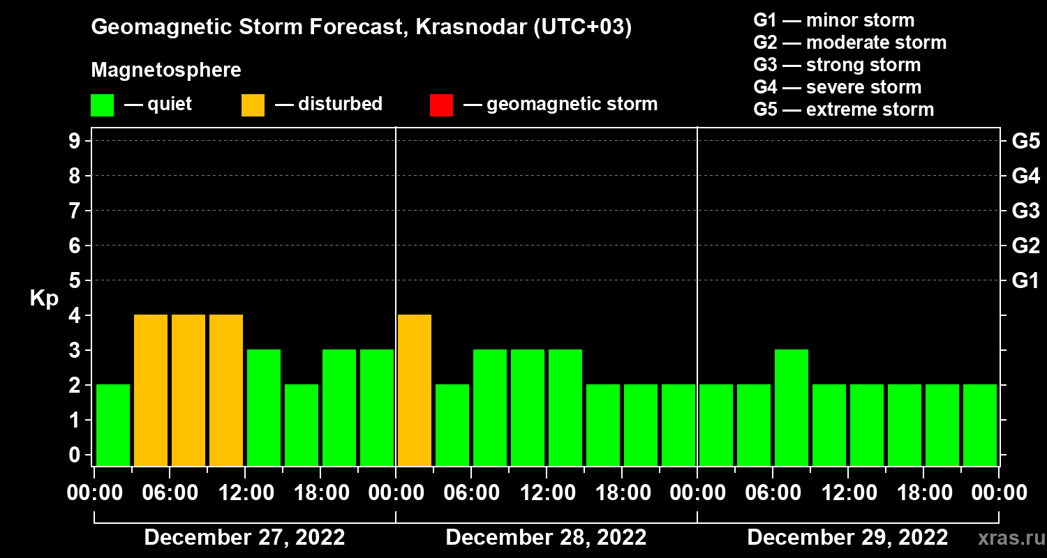 Geomagnetic storm forecast in Krasnodar for Dec 27, 2022