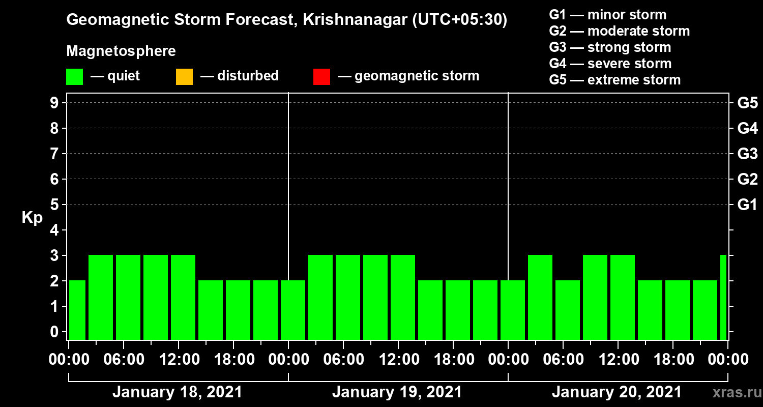 Geomagnetic storm forecast in Krishnanagar for Jan 18, 2021