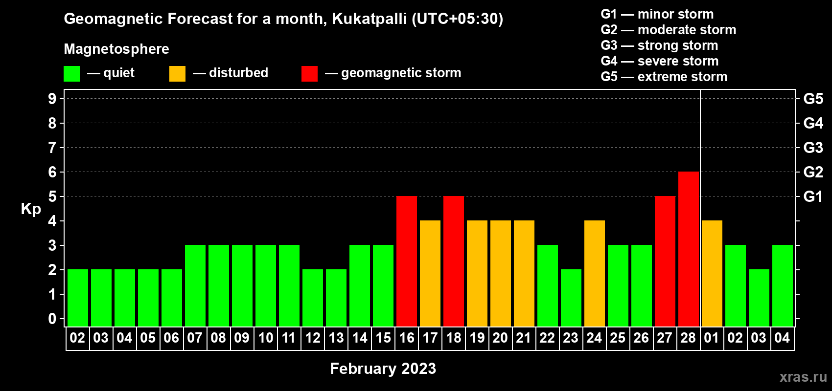 Geomagnetic storm forecast in Kukatpalli for Feb 02, 2023