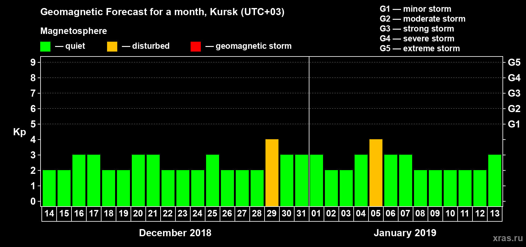 Geomagnetic activity forecast in Kursk — Dec 14, 2018
