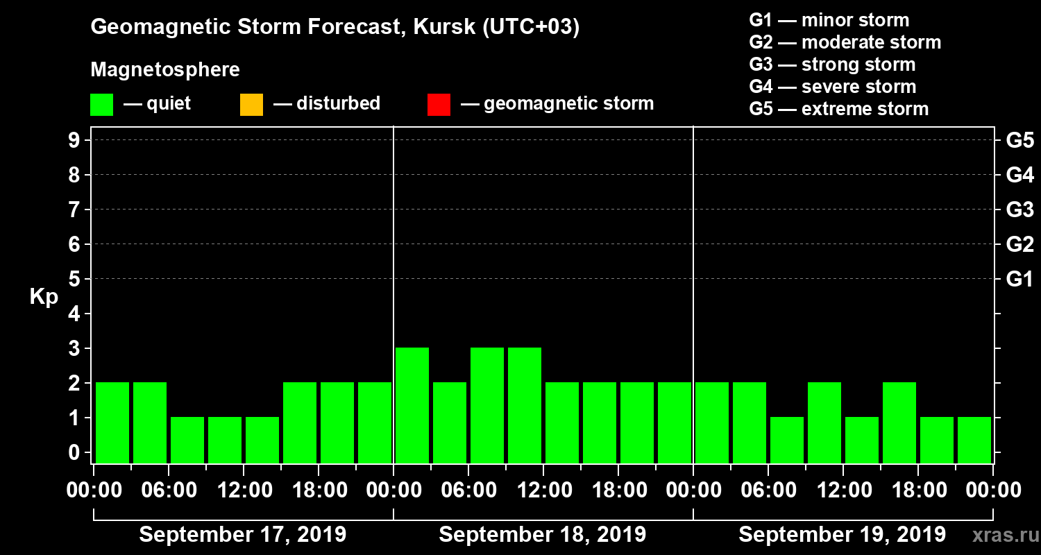Geomagnetic storm forecast in Kursk for Sep 17, 2019