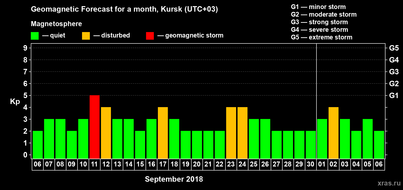Geomagnetic storm forecast in Kursk for Sep 06, 2018