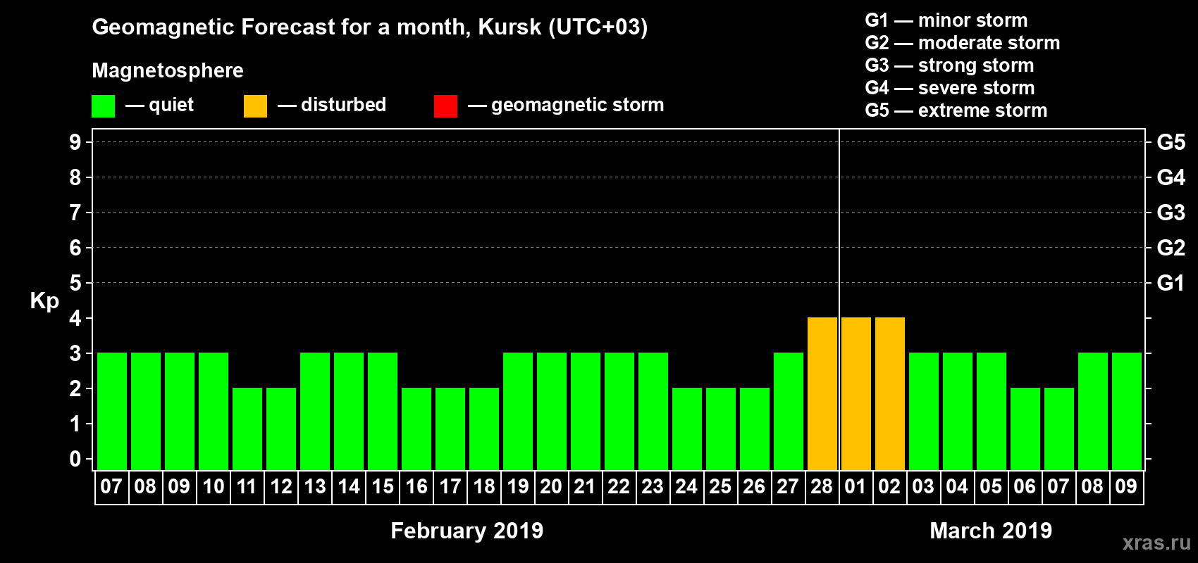 Geomagnetic activity forecast in Kursk — Feb 07, 2019