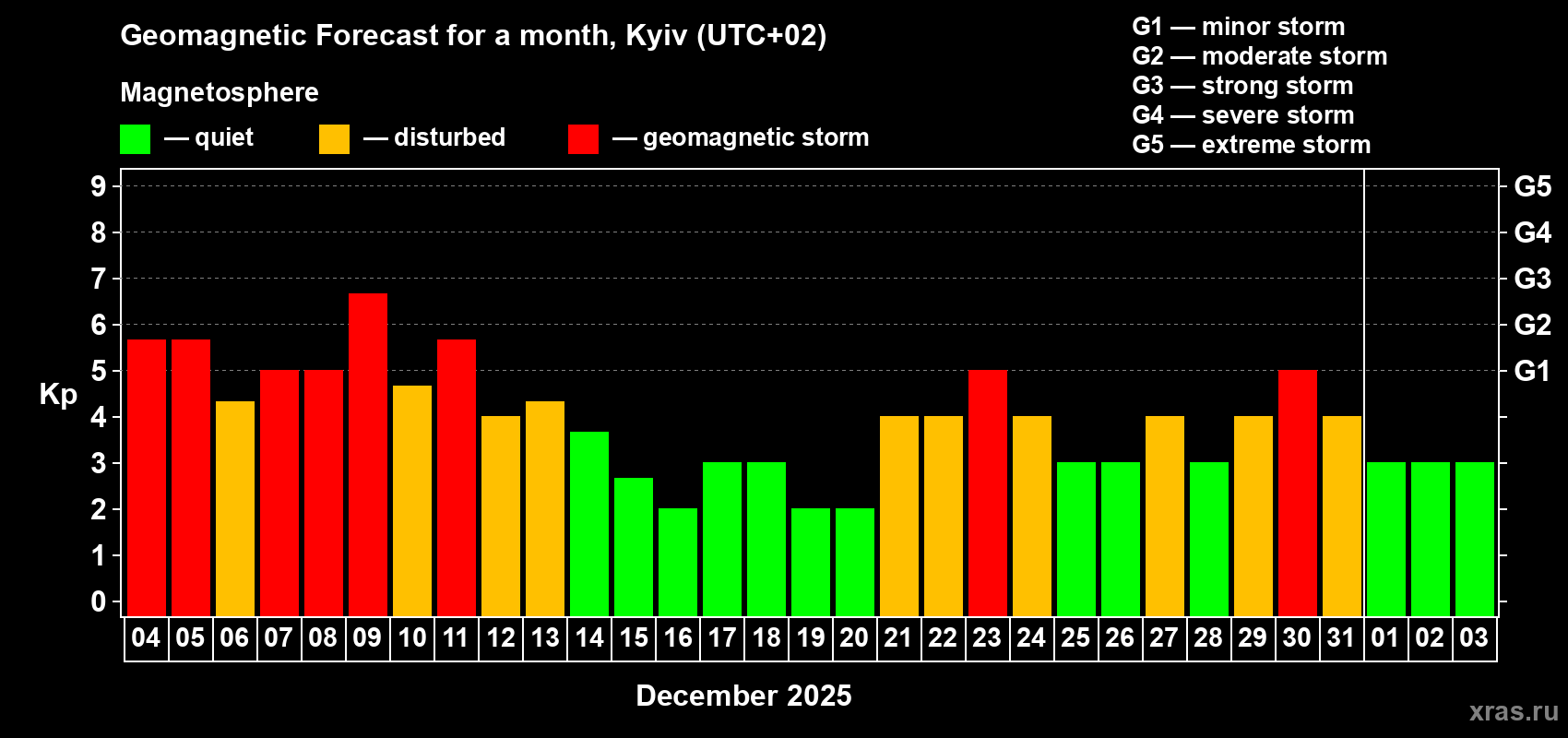 Geomagnetic storm forecast in Kyiv for Dec 04, 2025